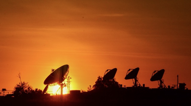 The array of satellite dishes lining the Naval Sea Systems Command facility in Norco is silhouetted against Monday’s scorching setting sun. Photo by Gary Evans