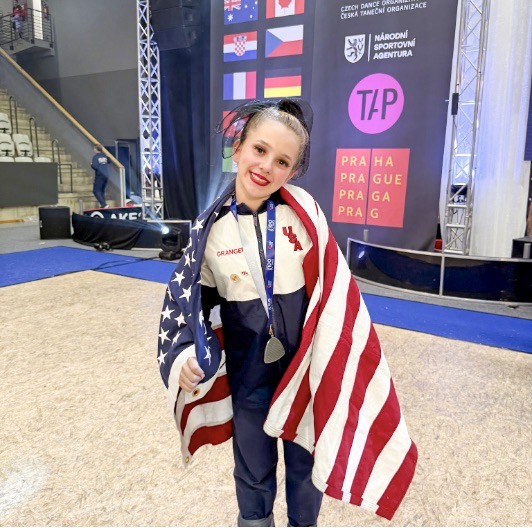 Granger, having started dancing when she was 18 months old, traveled half way around the world with her team to compete against 21 other countries at the World Tap Dance Championship in Prague, Czech Republic. They won the silver medal in the Production category and finished 5th in the Jr. Formation category.